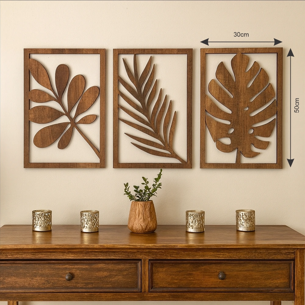 أضف لمسة طبيعية إلى منزلك مع ديكور جداري بأوراق خشبية أنيق. مصنوع من خشب MDF بسماكة 6 ملم، ويتميز بطلاء عالي الجودة يمنحه مظهراً ناعماً ومتيناً. يتكون الطقم من ثلاث لوحات مقاس كل منها 30×50 سم، مع تصميم أوراق استوائية يضفي دفئاً وأناقة على أي مساحة. ديكور جداري بأوراق خشبية يجمع بين الطابع الريفي والأسلوب العصري، وهو خفيف الوزن وسهل التعليق، مما يجعله مثالياً لتزيين منزلك أو لتقديمه كهدية مميزة.