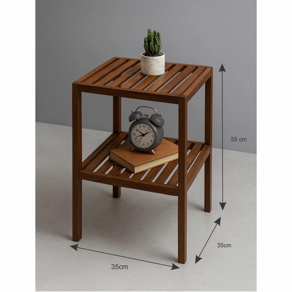 The Two-Tier Wooden Side Table is a stylish and practical addition to any space. Crafted from high-quality 18 mm MDF with a premium wood-grain finish, it offers durability and an elegant appearance. The design includes two spacious tiers, perfect for displaying décor, books, or plants, while its compact 55 cm height and 35×35 cm footprint make it ideal for small areas. Whether used in the living room, bedroom, or office, the Two-Tier Wooden Side Table blends functionality with timeless design, adding warmth and character to your interior.