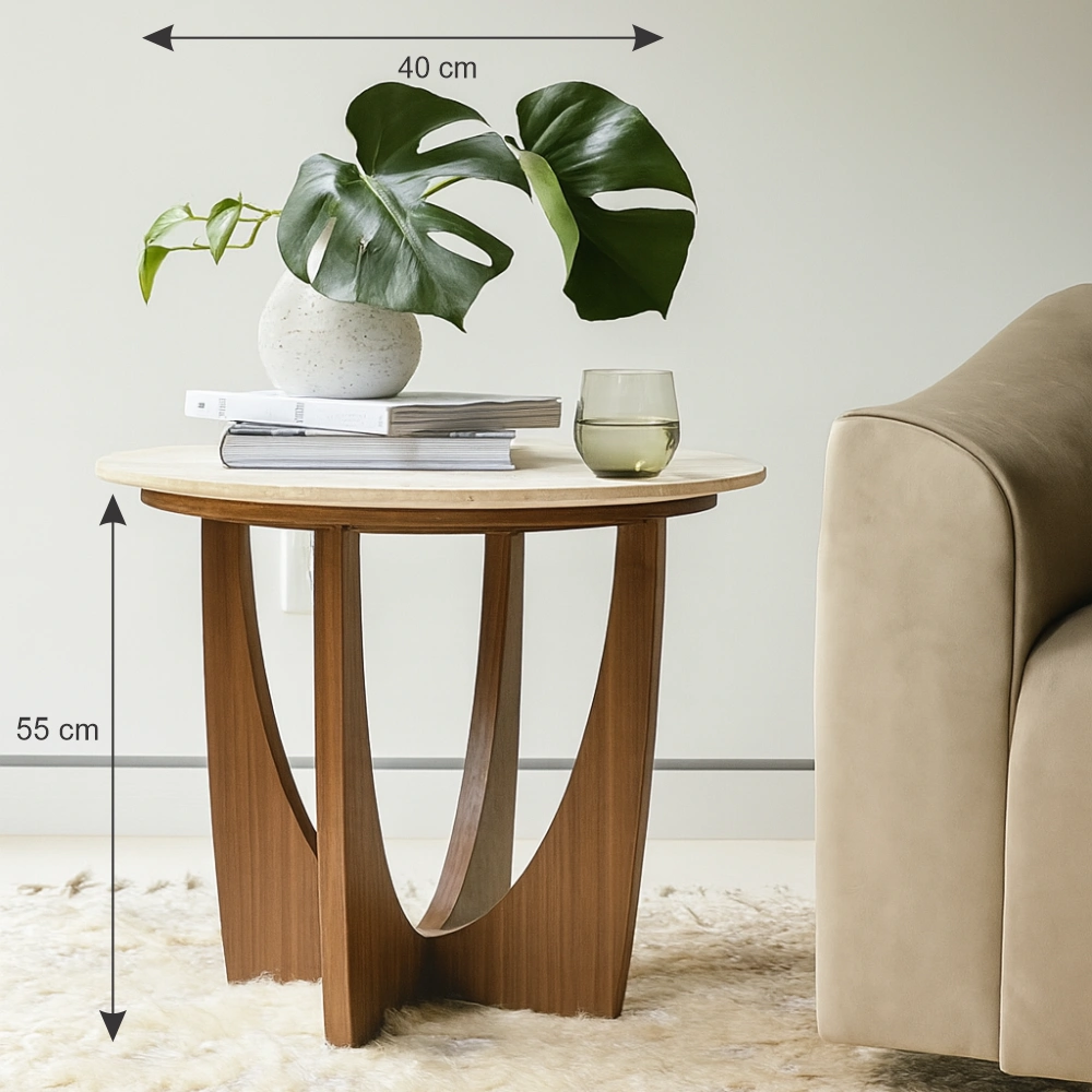 The U-Leg Wooden Side Table is crafted from high-quality MDF with a smooth, rounded top and unique arched leg design.